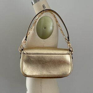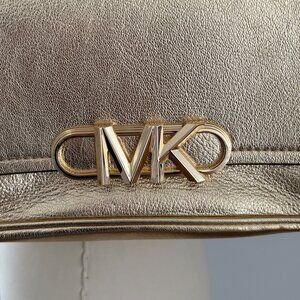 Michael Kors Parker Medium Gold Metallic Leather Shoulder Bag Chain Strap
