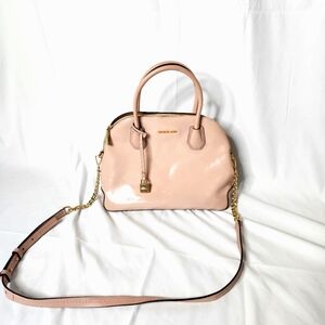 Good condition, shoulder bag or crossbody bag chain and leather strap light pink belly pink, very good condition, two compartments
