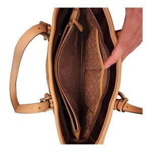 Michael Kors Patent Logo Monogram Tote Bag. No rips, tears, or Stains. In Excellent condition. Color is silver/pewter.