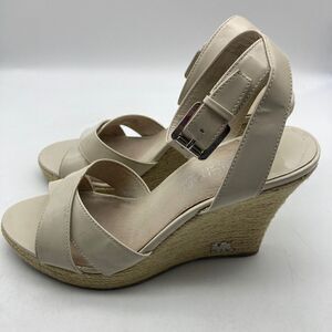 Michael Kors Patent Leather Espadrille Sandals Size 8M Beige Color