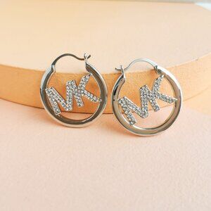 Michael Kors - Pave Hollow Logo Silver Plated Hoop Earrings - NEW