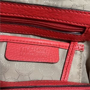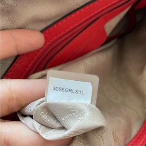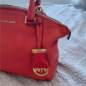Michael Kors Pebbled Leather Coral Riley Medium Satchel Bag with Gold Hardware