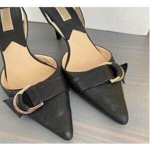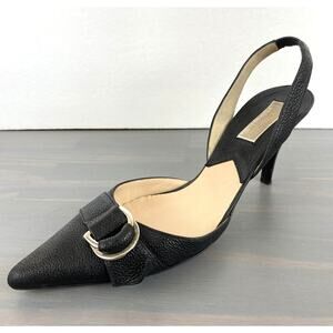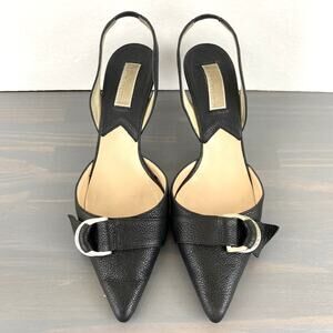 Michael Kors Pebbled Leather Slingback Heels Women Size 9M Black Buckle Italy