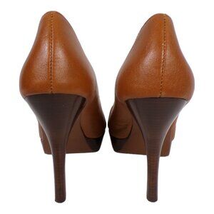 Michael Kors Peep Toe Platform Heels Gold Est 1981 Nameplate Sz 8.5M #596