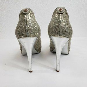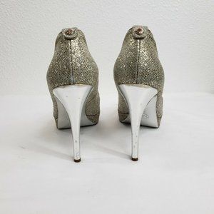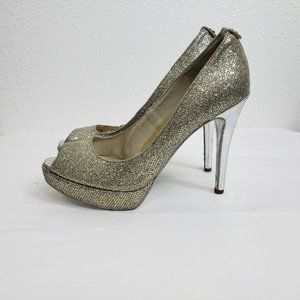 Michael Kors Peep Toe Slip On Pumps Gold Silver Women Size 6 M Platform Heels