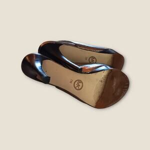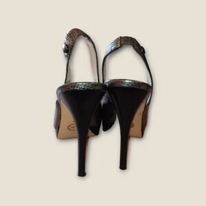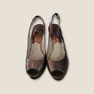 Michael Kors Peep Toe sling back stiletto heels silver snakeskin size 7