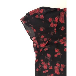 Michael Kors Peplum Top 3X Black Red Roses Sheer Chiffon Lined Flutter Sleeves