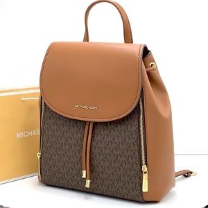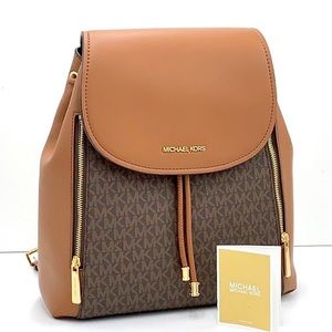 Michael Kors Phoebe 35F2G8PB2B Flap Drawstring Backpack Brown Signature NWT