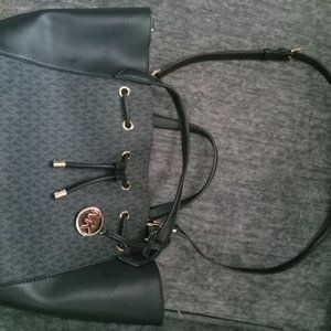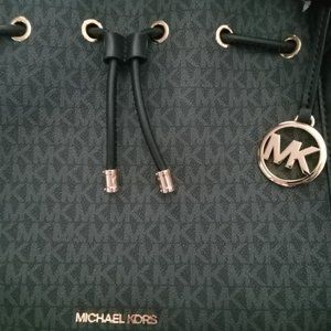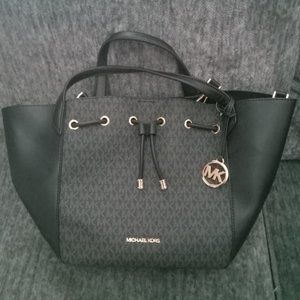 Michael Kors Phoebe Large two tone logo Bucket Bag in black with black straps and interior. Gold hardware. Black shoulder strap included. New, never used. You need this gem in your collection!