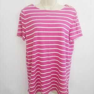 Michael Kors Pink And White Striped Blouse Tunic Zipper Shoulders