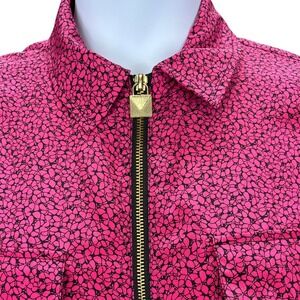 Michael Kors, Pink Blouse, Floral Blouse, Zip Up Blouse, Long Sleeve Blouse, Womens Blouse, Plus Size Blouse, Michael Michael Kors, Pink Floral Top, Casual Blouse, Work Blouse, Career Blouse, Size 1X, Lightweight, Casual chic, work wear, pink, bold color blouse