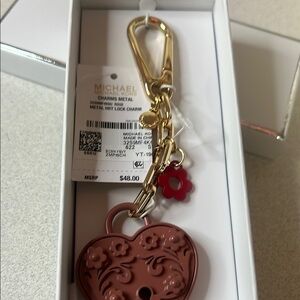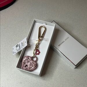 Add a touch of elegance to your accessories with this Michael Kors pink heart keychain. Perfect for adding a stylish flair to your keys or bag.