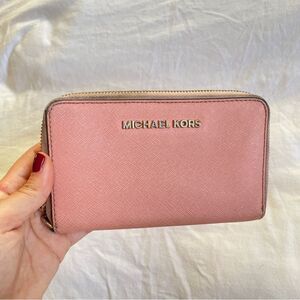 Michael Kors Pink Jet Set Travel Zip Wallet Clutch