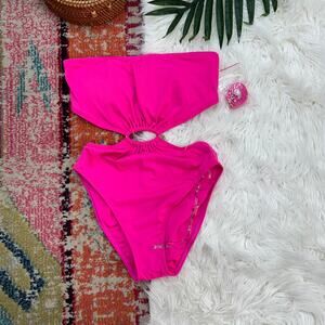 Michael Kors Pink Padded Cut Out Charm Strapless One Piece Swimsuit 8 Summer