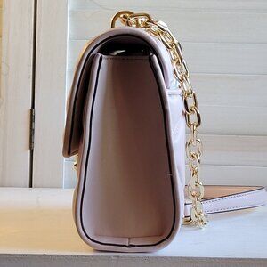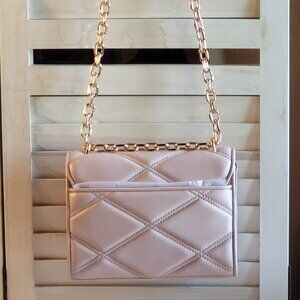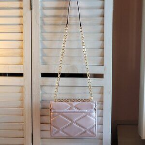 Elegant quilted design. Gold chain strap. Secure front clasp.