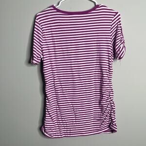 Michael Kors pink striped tee with zippered sleeves. Size large. One light stain as shown.