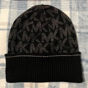 Chic knit beanies by Michael Kors. Features vibrant pink and classic black designs. Ideal for stylish winter wear.