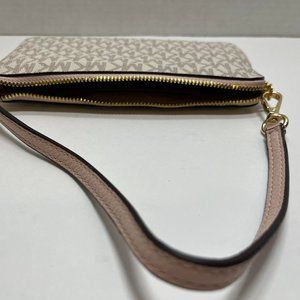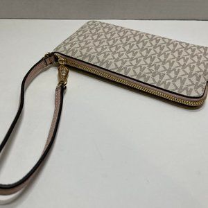 Stylish Michael Kors wristlet. Features MK logo pattern. Gold-tone hardware. Perfect for essentials. I added a small ring so you can attach a long strap to it to wear it as a Crossbody or shoulder bag. It can be easily removed by just cutting the thread off. Feel free to make me an offer! Pet free and smoke free home!
