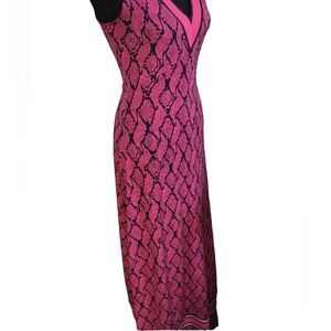 Michael Kors Pink and Navy Blue Snake Skin Print Maxi Dress