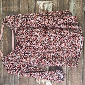 Michael Kors Pink and Red Smocked 3/4 Sleeve Blouse, Size L