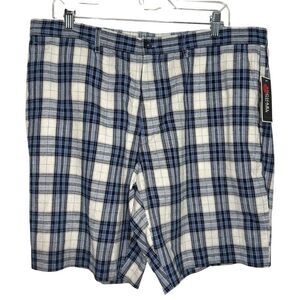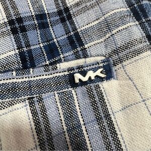 Michael Kors Plaid Flat Front Shorts Mens 36 Cotton Linen Blue/Black/White NWT