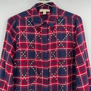 Michael Kors Plaid Studded Button Down Shirt Women’s Large Red Navy