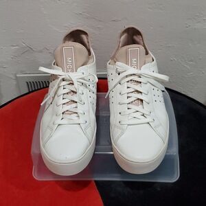 Michael Kors Platform Ace Sneaker in White & Blush Pink Rose Gold Size 7.5