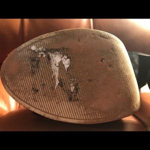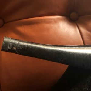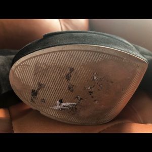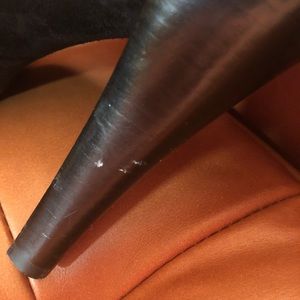 Suede platform booties with cutouts and gold hardware. Ultra high. I did wear these quite a few times (as you can see, the soles are worn in) and the heels are slightly scuffed as shown in the pictures. Other than that I took pretty decent care of them and the material itself is flawless.