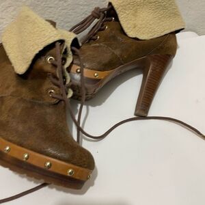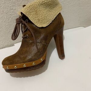 Michael Kors Platform Lara Studded Ankle Boots Faux Shearling size 6