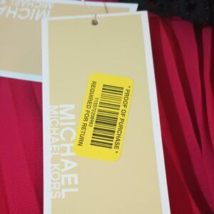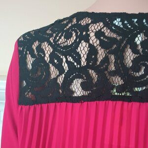 Michael Kors Pleated Back Blouse L Magenta with Black Lace Yoke Short Sleeve Top