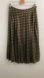 Pleated metallic gold & black skirt. Wavey gold lines. Side zipper & single eye hook closures. Content is 100% Polyester. Measurements flat are approximately 15.75” waist & 32” long. In excellent like new condition with NO spots or damage.