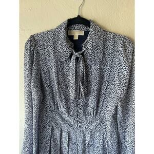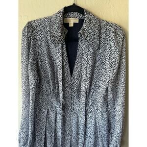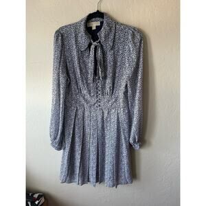 Michael Kors Pleated Blue with White Hearts Long Sleeve Dress Size 6