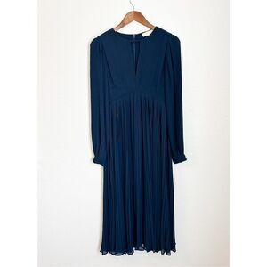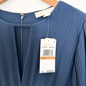 Michael Kors Plissé Pleated Midi Dress Navy Blue Long Sleeves New Small