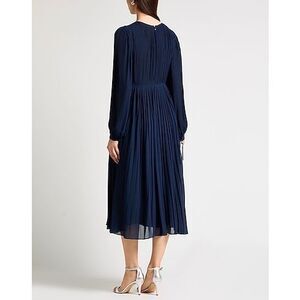 Michael Kors Plissé Pleated Midi Dress Navy Blue Long Sleeves