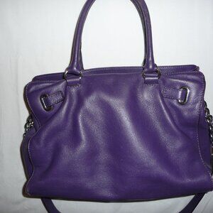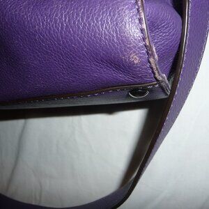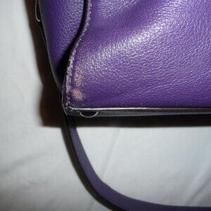 Includes crossbody strap that is non detachable- soft leather purse. Interior has some stains. Exterior has corner wear (x4) and handle wear- see photos- Price reflects. Measurements 14”Lx 4”Wx 10”H