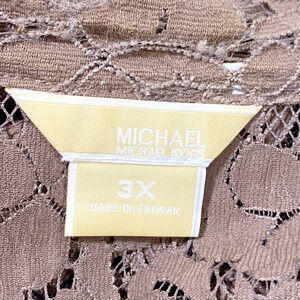 Unique Michael Kors Plus Size Blouse - a wonderful Brown lace patterned button front top with round neckline and short sleeves. Size 3X - Gently worn - no flaws - so cute!