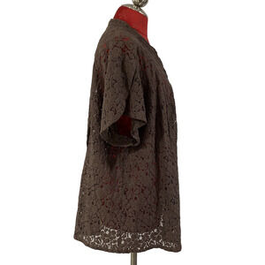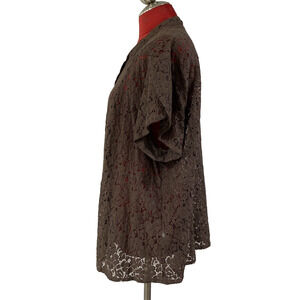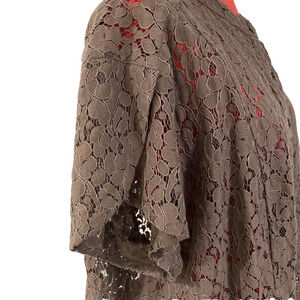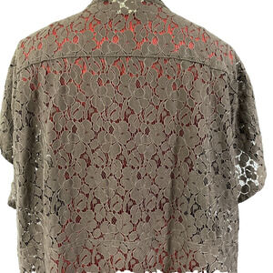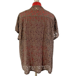 Michael Kors Plus Size Blouse Brown Lace Button Front Top Short Sleeves 3X