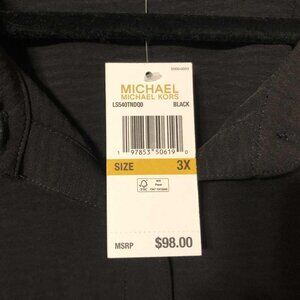 Michael Kors Plus Size Blouse Size 3X | NWT $98 | Black Top w/ MK Gold Buttons