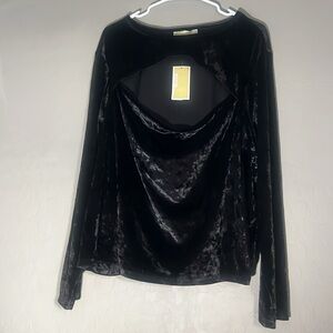 Michael Kors Plus Size Cutout Long-Sleeve Velvet Black Top 3X