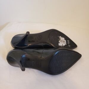 Good Condition. They had gel sticky pads inside and it left a little sticky residue on the gold inner part. That part is also starting to peel up on the left shoe.