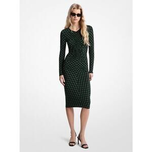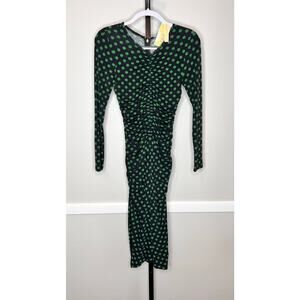 Michael Kors Polka Dot Stretch Matte Jersey Midi Dress Black Moss Women's XS NWT