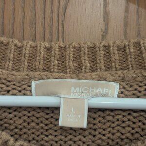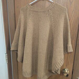 Michael Kors Poncho Sweater Tan/Gold Wool Blend with Gold Tone Logo Accents- L
