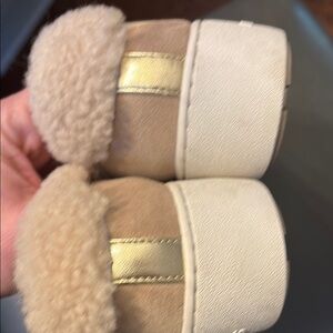 Suede/shearling upper; shearling/manmade lining; rubber sole