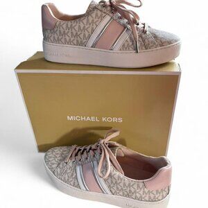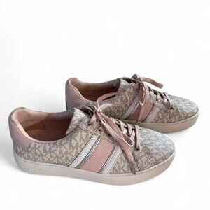 Michael Kors Poppy Logo Stripe Sneakers in a Powder Blush color scheme. Size 9