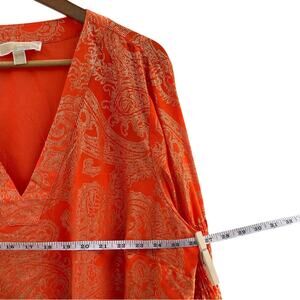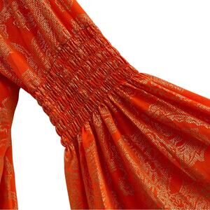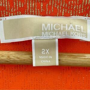 Michael Kors Poppy/Gold Samara Smocked Bell Sleeve Tunic Metallic Blouse Size 2X