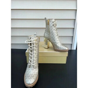 Michael Kors Porter Lace Up Boot Designer MK Signature Pale Gold