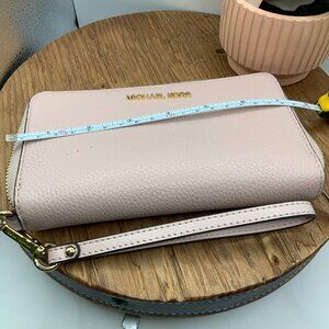 Michael Kors Powder Blush Jet Set Travel Flat Leather Pebbled Wristlet Wallet