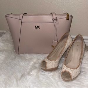 Michael Kors Powder Blush Medium Maddie Gold Hardware Zip Tote Handbag Purse