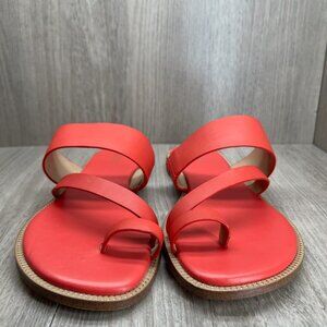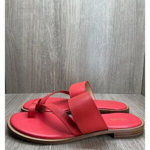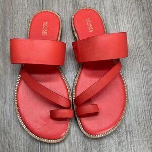 Michael Kors Pratt Flat Slide Sandals Womens 9.5M Slip On Toe Ring Leather Red