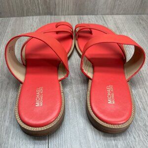 Michael Kors Pratt Flat Slide Sandals Womens 9.5M Slip On Toe Loop Leather Red
